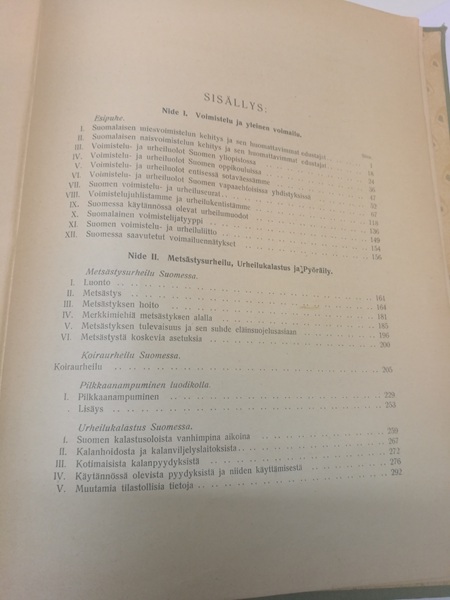 Yli 100-vuotias, antiikkikirja Suomen urheiluista 1850-1906, jopa 1600 luvulta tietoa lajeista