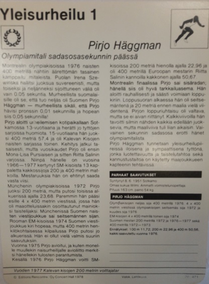 Urheilutietokortit 1978