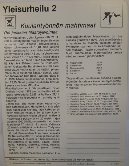 Urheilutietokortit 1978