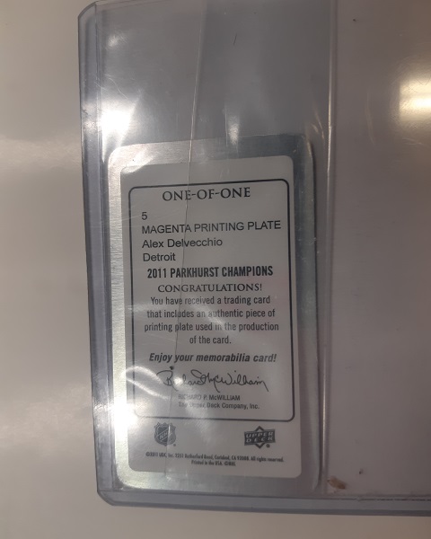 2011 Parkhurst Champions Alex Delvecchio 1/1 Mini Magenta Printing Plate