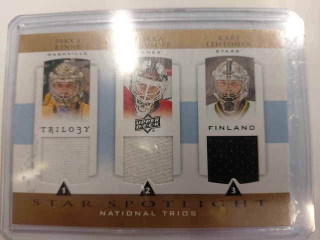 2013-14 Upper Deck Trilogy Star Spotlight Pekka Rinne Miikka Kiprusoff Kari Lehtonen jersey