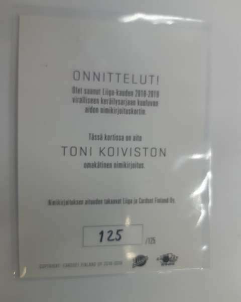 2018-19 Cardset Signature Toni Koivisto 125/125