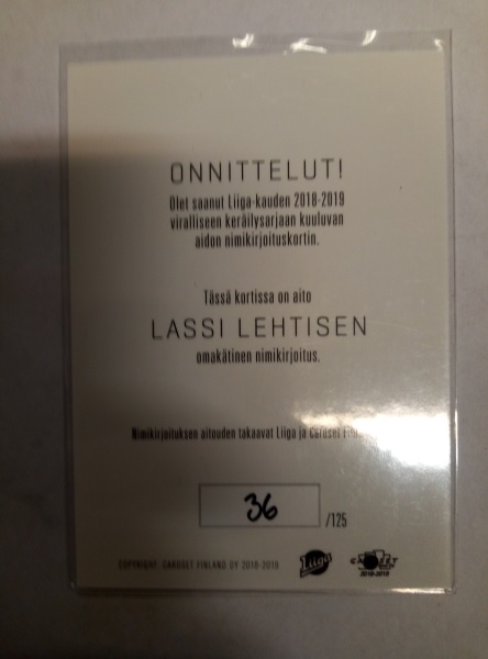 18-19 Cardset SM-Liiga Signature Platinum Edition Lehtinen /125