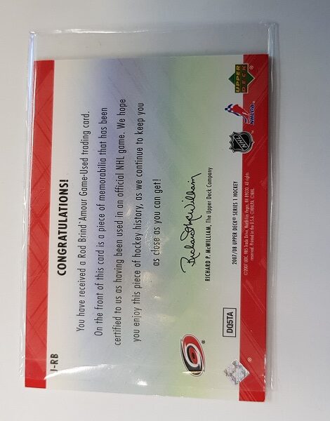 2007-08 UD Series 1 Authentic Materials Game-Used Hockey Memorabilia