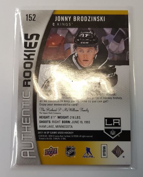 SP Authentic Rookies Player-Worn Hockey Memorabilia