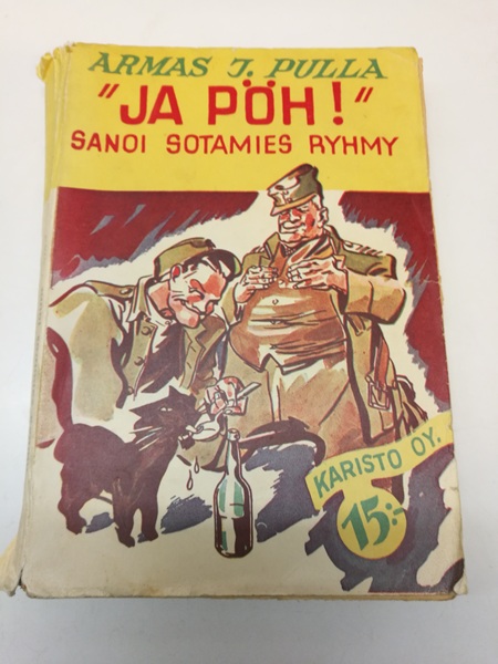 Hapertunut ja kulunut, mutta kasassa ja sivut tallessa.