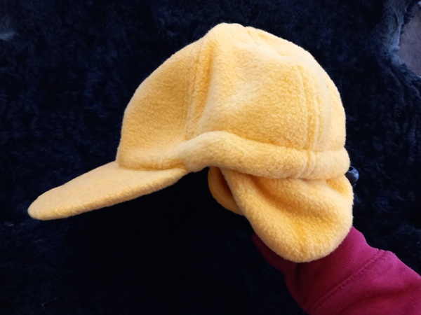 Keltainen korvaläpällinen talvi-lippis