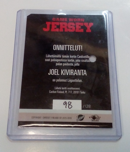Cardset Game Worn Jersey (vaihdettu)