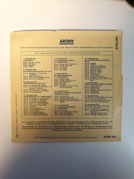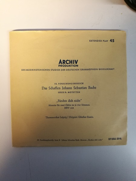 LP single: Das Schaffen Johann Sebastian Bachs – Serie B: Motetten – Fürchte dich nicht (K)