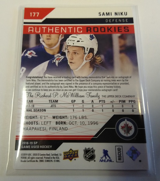 UD SP Game Used Authentic Rookies Signature Jersey