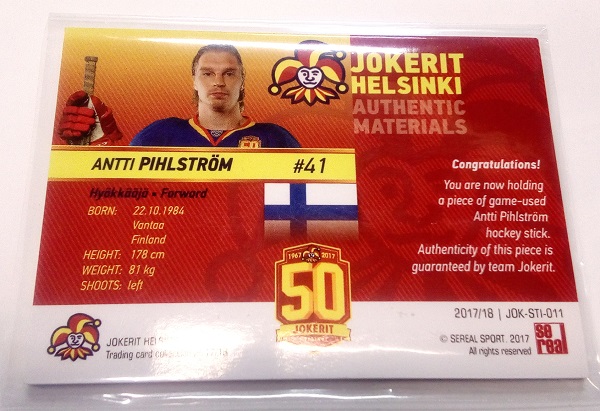 Sereal Jokerit Helsinki Authentic Materials Game-Used Stick