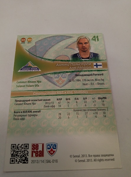 Pihlstrom, Antti – KHL 2013-14