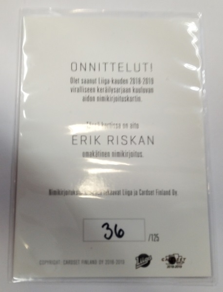 Riska, Erik – SM-Liiga 2018-19