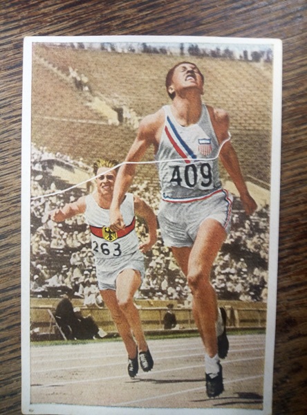 Wilson, Buster Charles, intialaista alkuperää oleva amerikkalainen (lähtönumero 409) oli kärjessä kymmenen ensimmäisen viiden lajin jälkeen Kuvassamme 100 metrin juoksussa saksalainen Wegener.