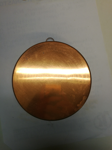 Hieno syvä kuparinen koristevuoka.