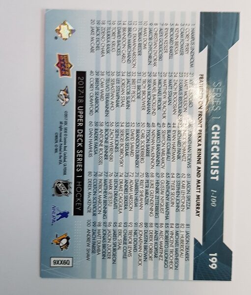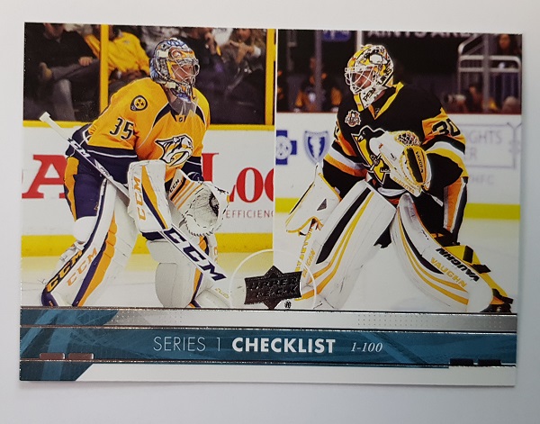 UD Series 1 checklist featured on front Pekka Rinne and Matt Murray